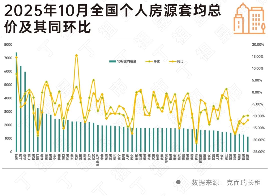 不仅仅是上海,克而瑞长租数据显示,2025年10月,55城个人租赁市场套均总价约2264元/月,环比下降4.83%,同比下降5.71%;其中深圳等核心城市租金坪效降、但套均总价涨,这反映出客户对大面积品质产品需求提升明显。改善型租房需求目前已在全国多个城市出现。